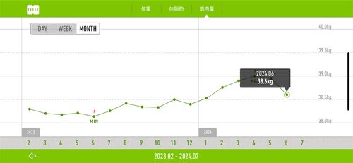 雨のち曇り 日曜日 6月も今日で終わり〜 なので まとめましょう! 筋肉量をグラフにしましょう〜 アプリに入力入力… 結果こちら… 平均…結構下がった 振り返ると 4月は39台が17日 5月は14日 そして6月は3日… そしてそして 37台の日が1日あった… そりゃ下がる…